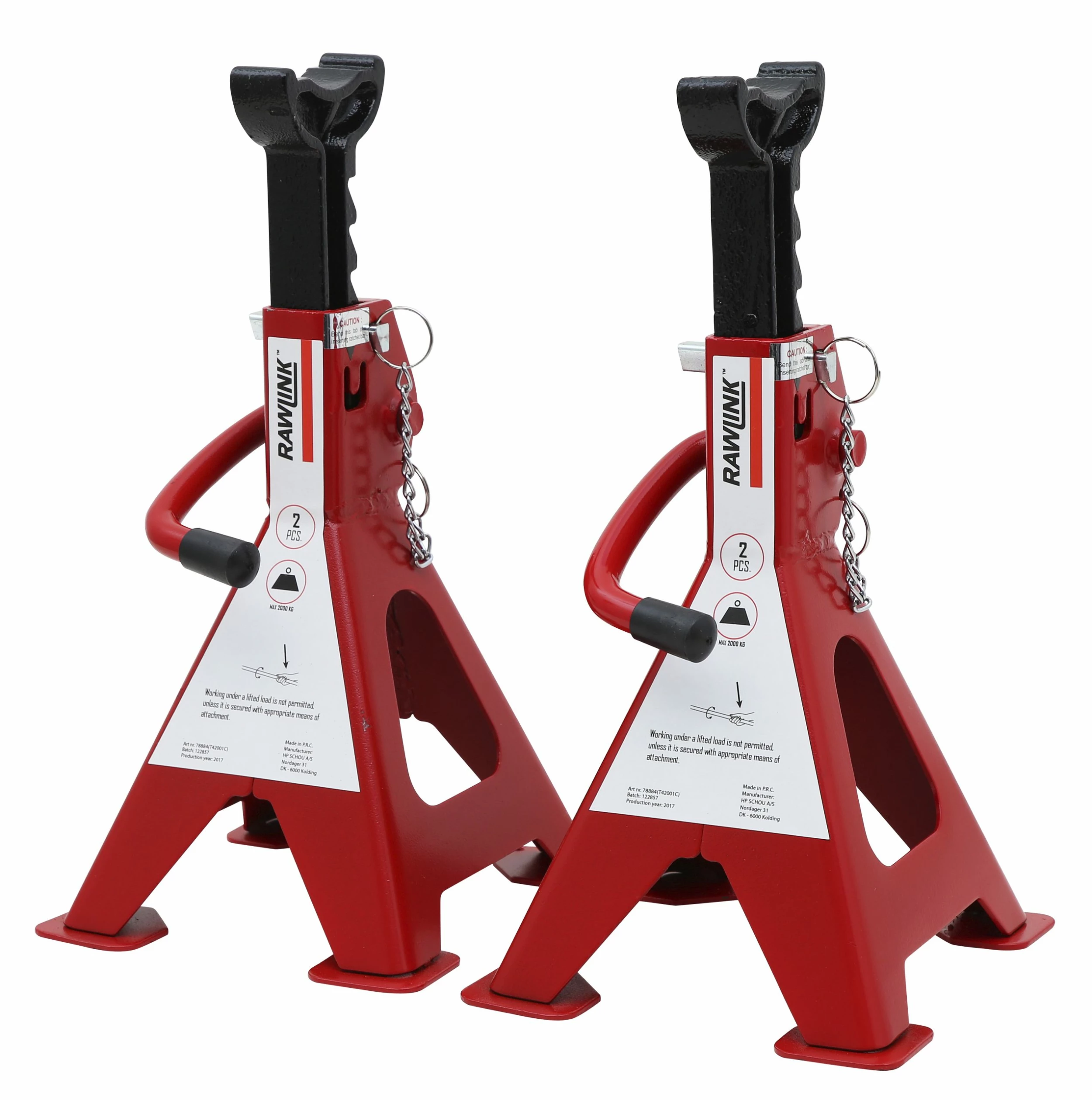Rawlink støttebukk, 2 stk, med kapasitet på 2000 kg per bukk. Min. høyde: 278 mm. Maks høyde 428 mm. I materiale stål.