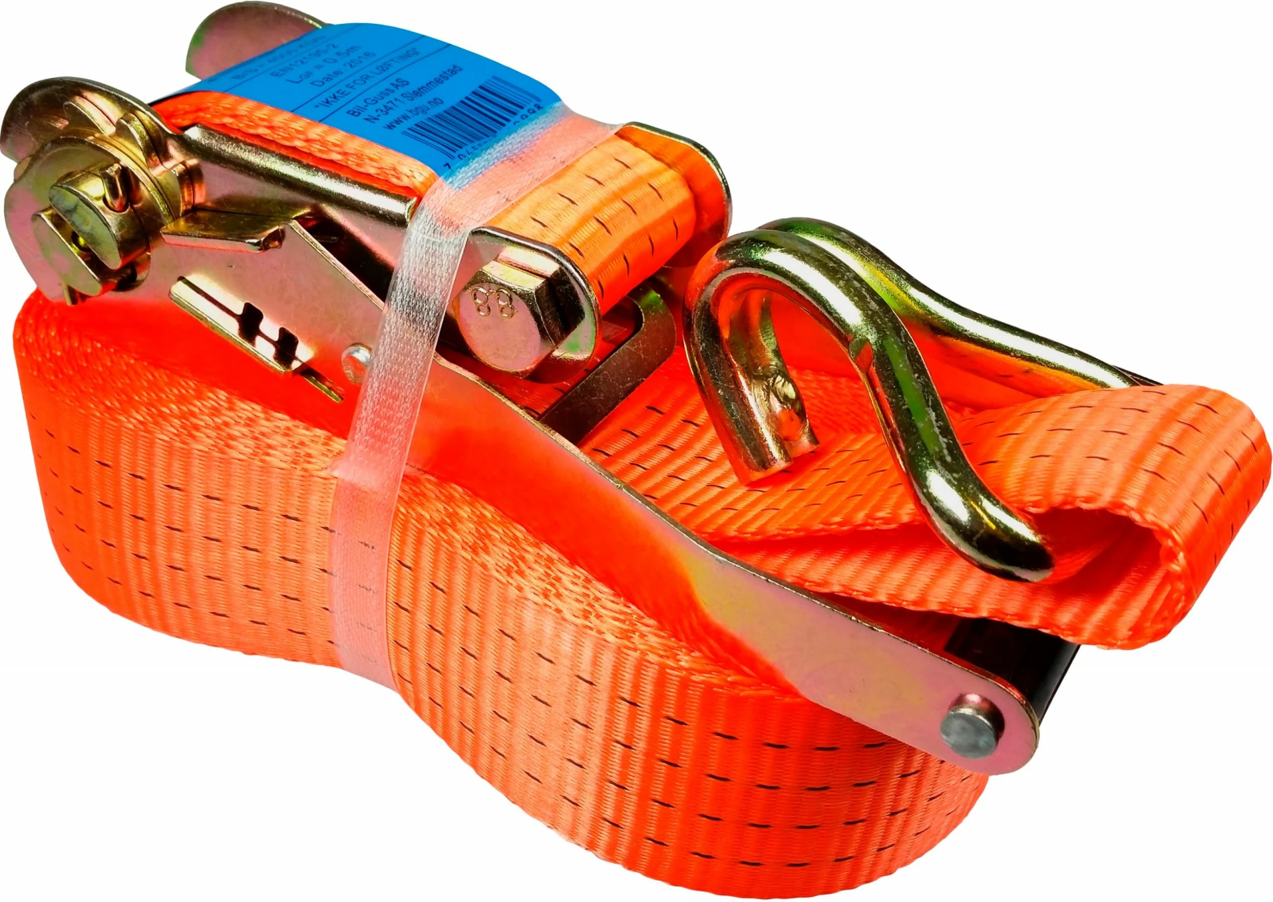 Bagasjebånd med mekanisk jekkestrammer og 2 kroker. Surrestyrke 4000kg.