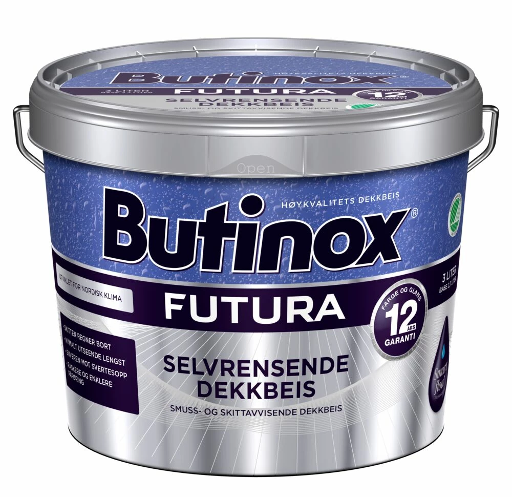 Butinox Futura med Smart Flow Technology gir suverene påføringsegenskaper som forenkler arbeidet. Anbefales på nytt grunnet, tidligere beiset og dekkbeiset treverk. Kan også benyttes på metall, trykkimpregnert, grunnet treverk.