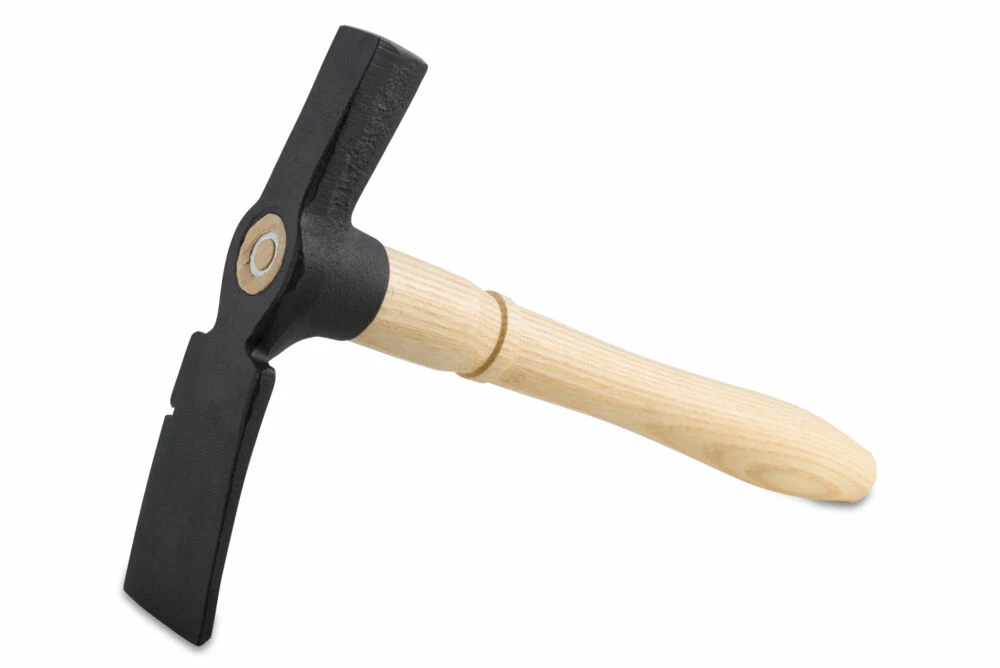 Murhammer med firkant hode for å banke murstein på plass. Andre enden av hammeren har en flat og skarp meisel som er velegnet til å dele murstein. Murhammeren har også spikerskrutrekker på siden. Hammerens hode veier 600 gram.