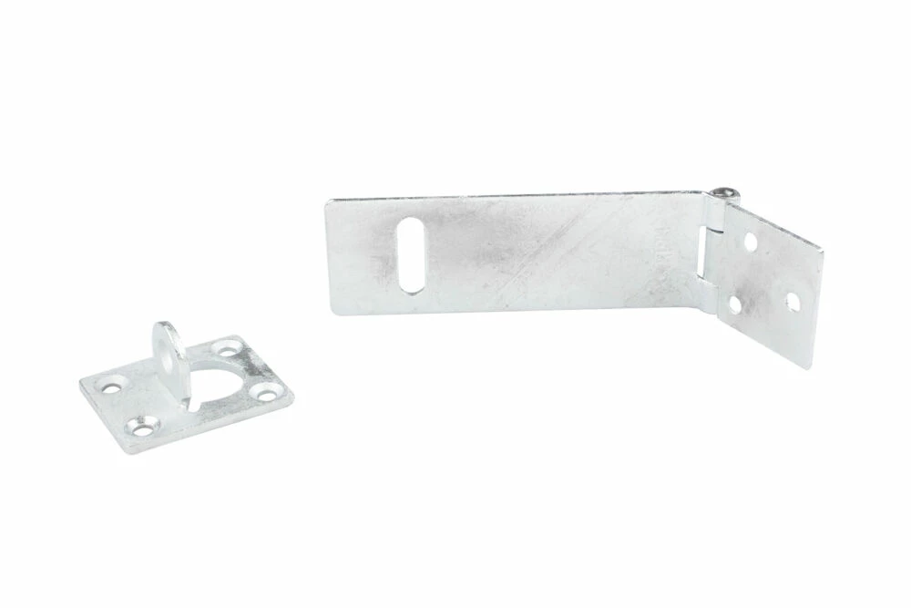 Hengelåshaspe av stål med vertikal ring for hengelås med maks 9 mm bøyle.