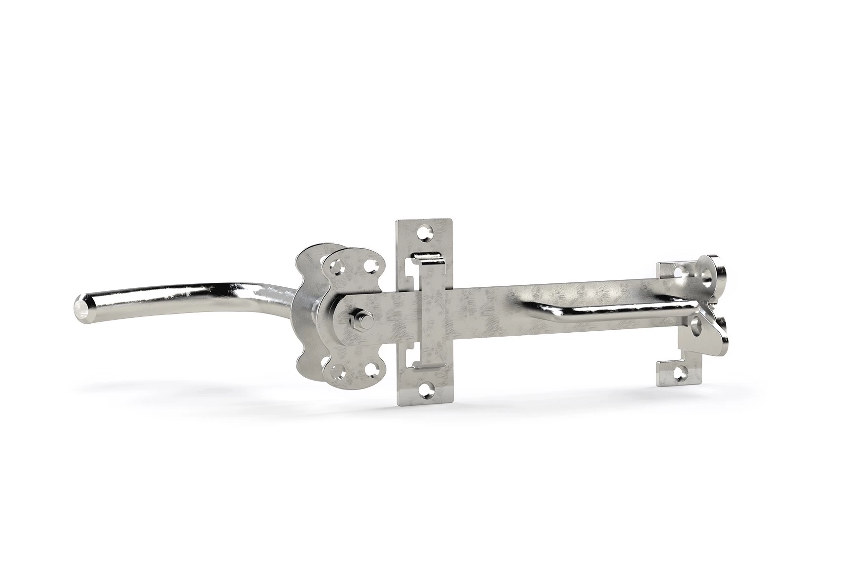 Habo 2400 portlås universal, med stalldørgrep, er laget av stål. Designet for dobbeltsidig betjening. Varmforsinket for ekstra gode korrosjonsbeskyttende egenskaper. Kan låses med hengelås med maks 10 mm bøyle. Tilpasset 19-90 mm dørtykkelse.