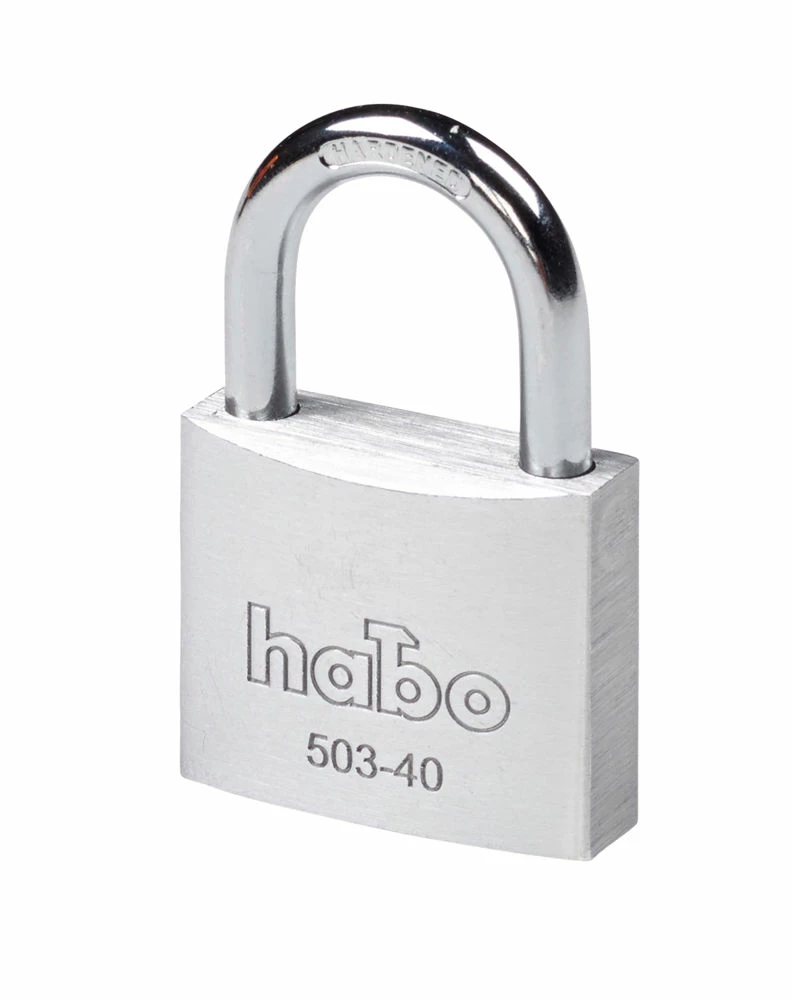 Habo 503-40 hengelås av massiv aluminium. En solid hengelås med et bredt bruksområde. Egnet for bruk både inn- og utendørs. Låsen har Ø6 mm dobbelboltet bøyle av herdet stål. Leveres med 2 stk. nøkler.