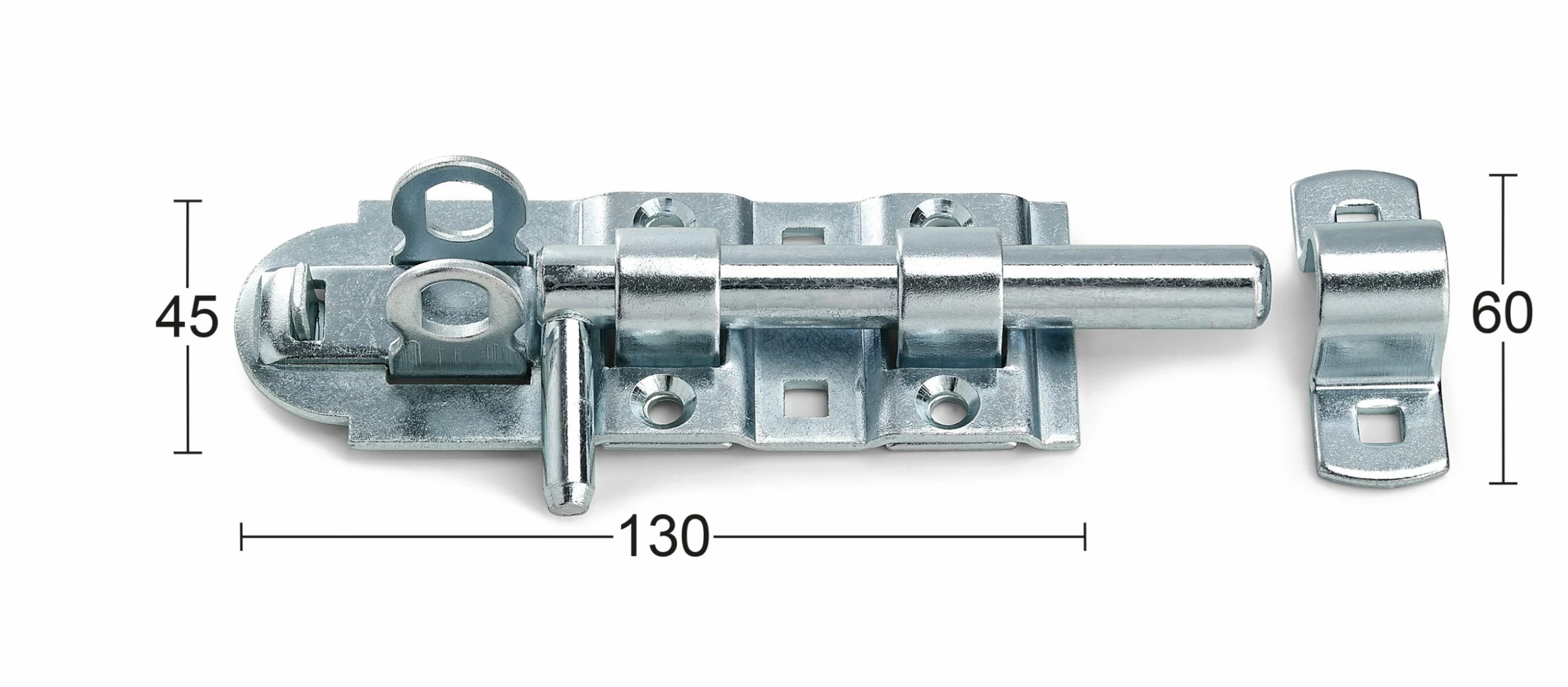 Bolteskåte av elforsinket stål. Kan låses med hengelås med maks 6 mm bøyle. Boltdiameter er 13 mm. Leveres inkludert skruer.