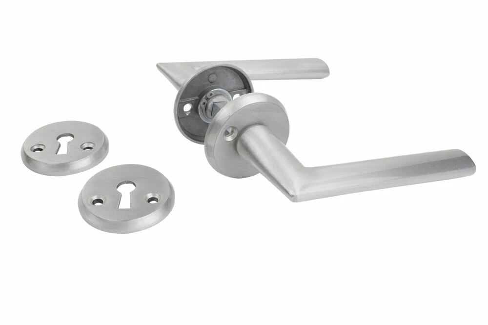 Dørhåndtak av aluminium. Tilpasset dørtykkelse 38-42 mm. Bygger ut 50 mm.