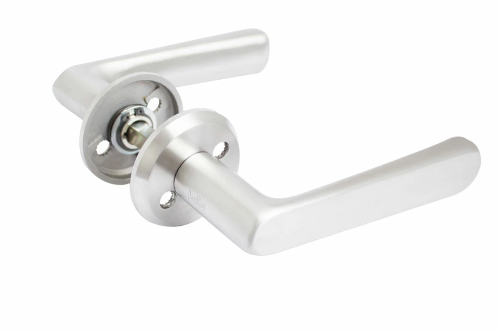 Utvendig dørhåndtak av rustfritt stål med dobbeltvirkende returfjær beregnet for ytterdører med modullåskasse.
