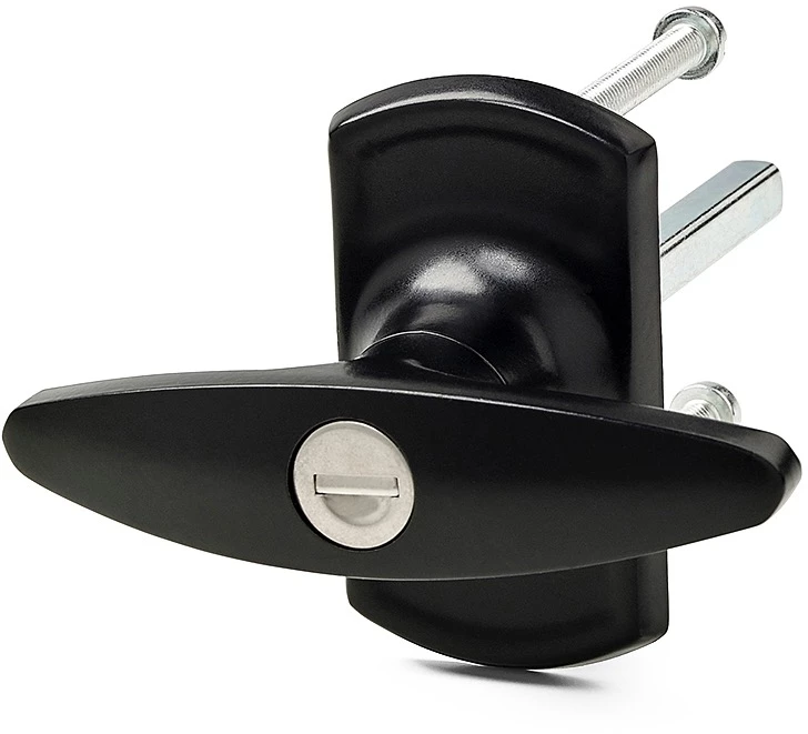Låsbar garasjeportvrider i sort. CC51 mm mellom festeskruene.