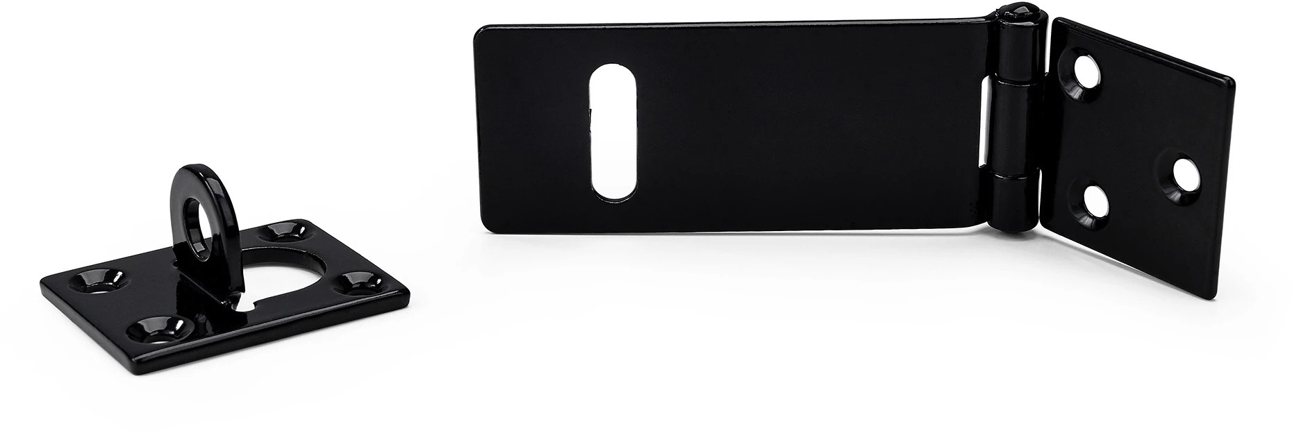 Hengelåshaspe av stål med vertikal ring for hengelås med maks 9 mm bøyle. 90 mm.