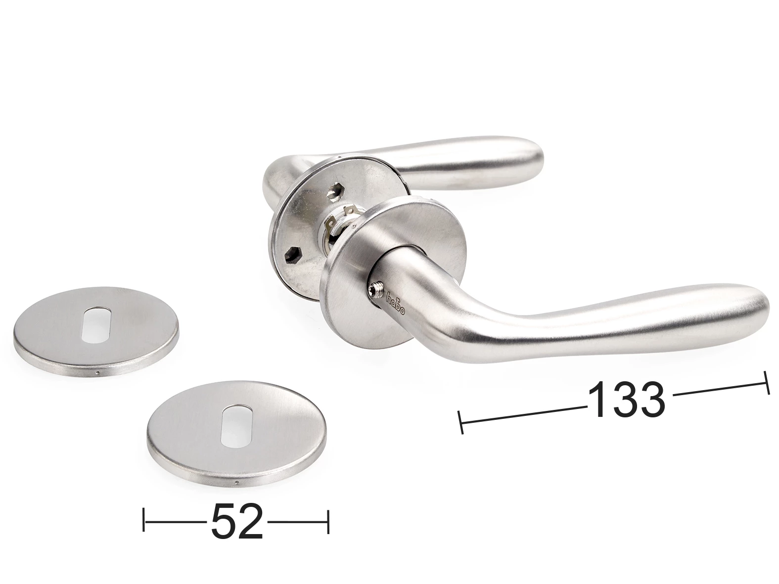Dørhåndtak med nøkkelskilt og skjult innfesting for innerdører.
