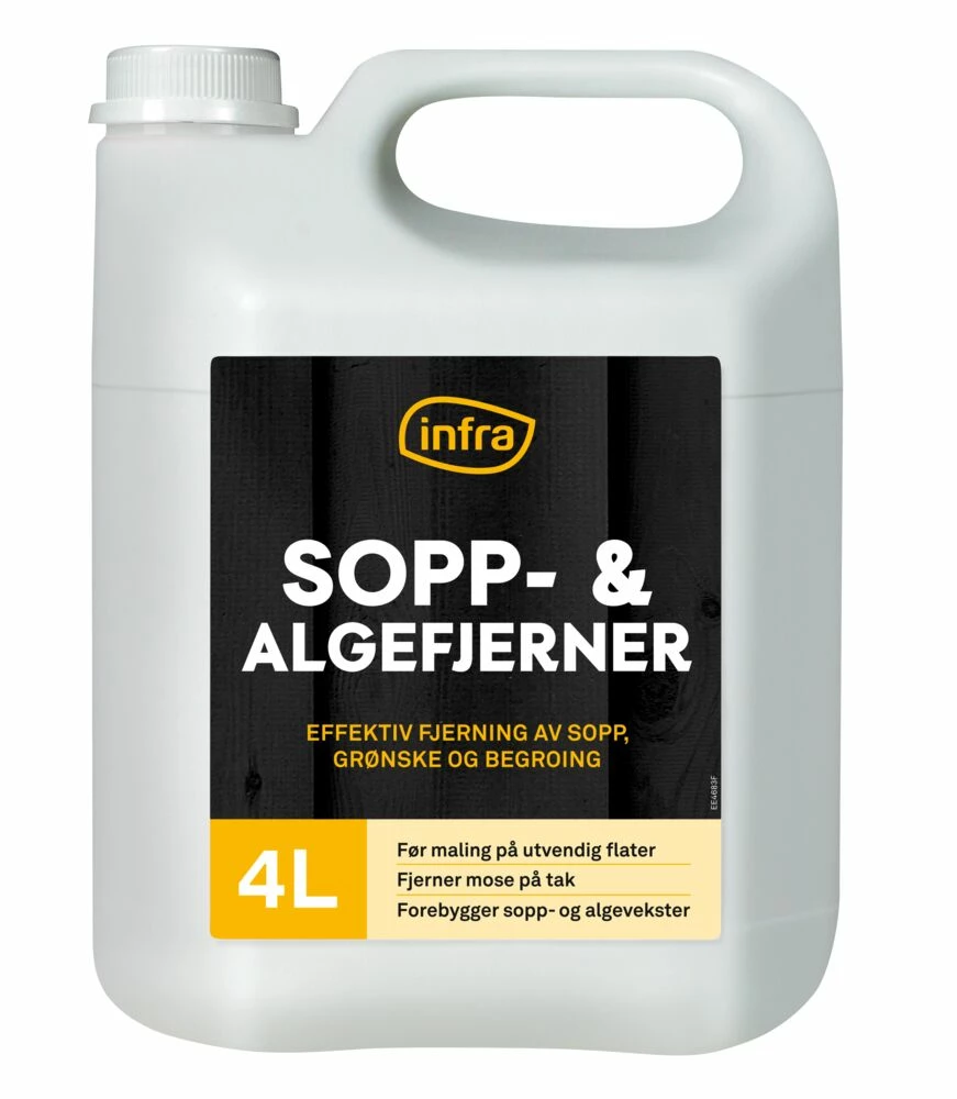 Fjerner effektivt uønsket vekst av sopp, grønske, alger eller lav. Benyttes på utendørs tak, stein, mur, fasader og terrasser.