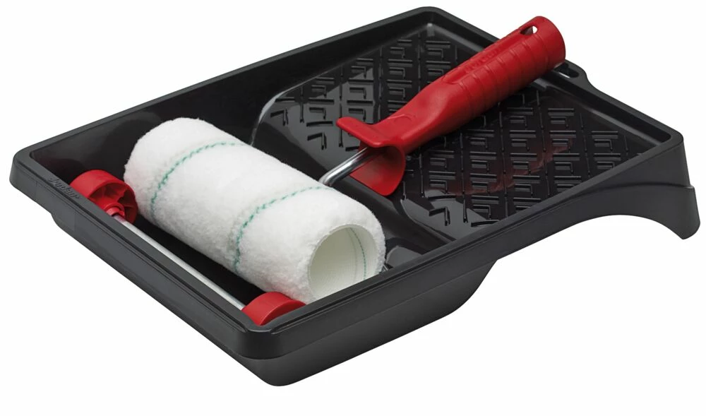 Sett med 18 cm rullekar, bøyle og malerull. Benyttes til tak, vegg og gulv som har jevne underlag