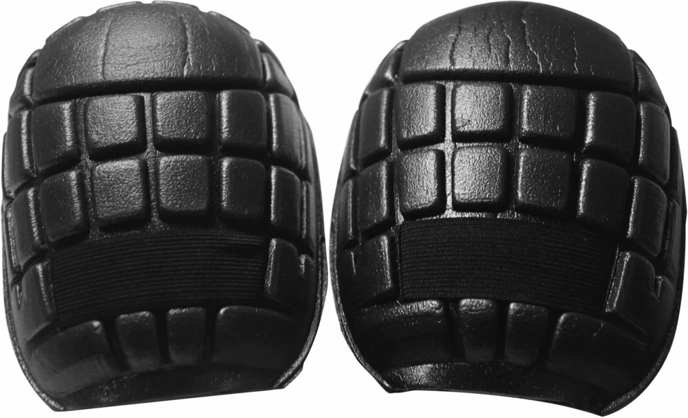 Knebeskyttere laget av myk og slitesterk skumplast. Festebånd med strikk og borrelås.
