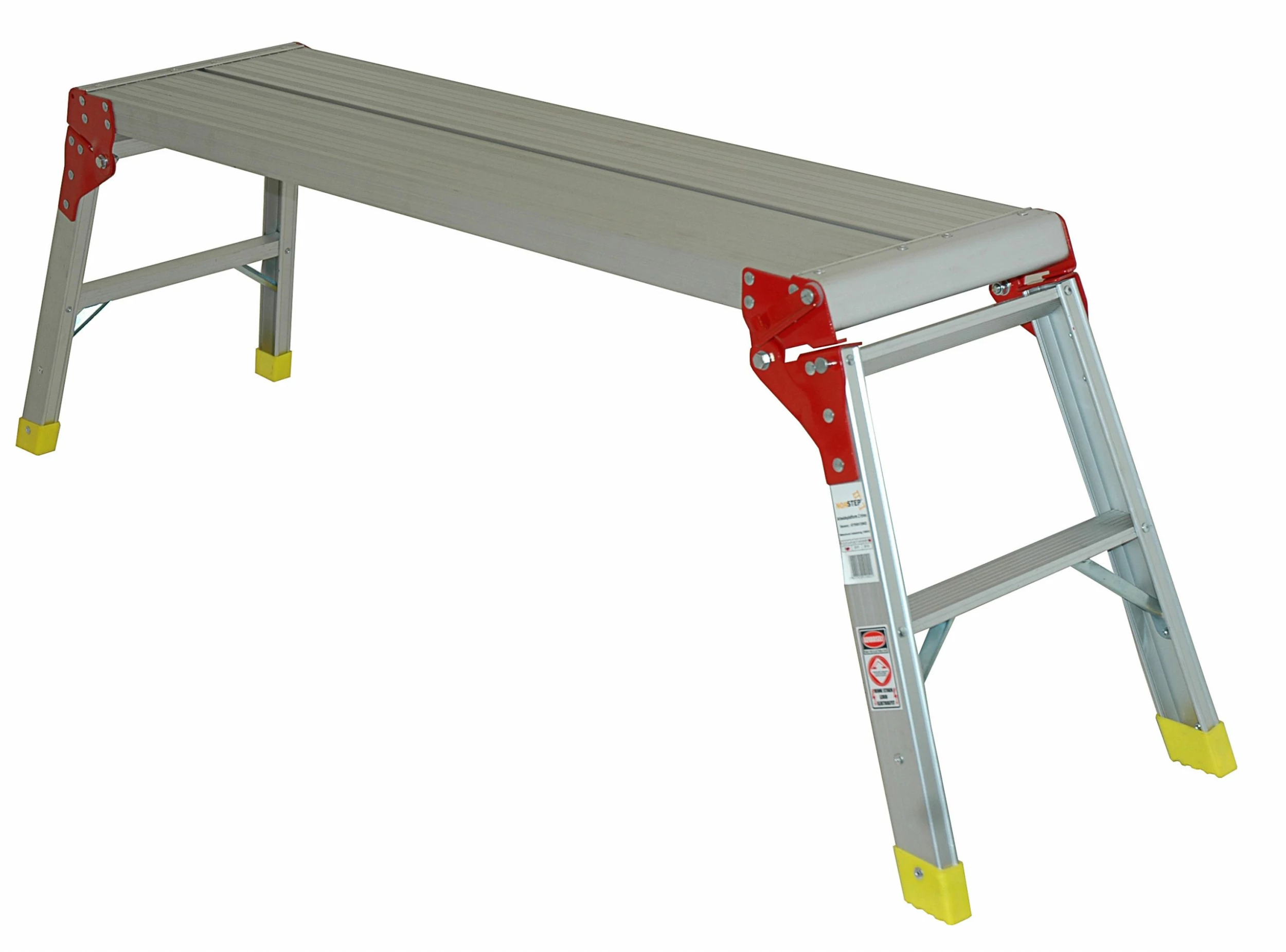 Nor-Step Arbeidsplattform 2-trinn er en arbeidsplattform i aluminium med sammenleggbare ben. Maksimal belastning 150 kg. Praktisk plattform som tar liten plass og er enkel å trasnsportere. Størrelse plattform: (L x B) 121 x 30cm. Størrelse utfoldet: (H x L x B) 48 x 156,5 x 39 cm. Størrelse sammenlagt: (L x B x H) 122 x 39 x 16 cm.