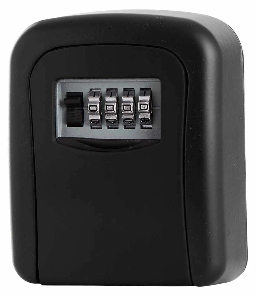 Med kodelås. Størrelse 115mm x 95mm x 43mm. Inkludert 4 x skruer og rawlplugs.