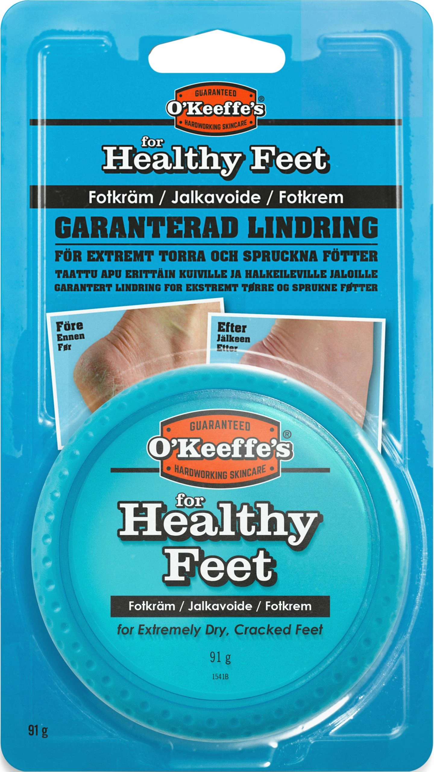 O’Keeffe’s Healthy Feet fotkrem med høyt konsentrerte formuleringer ble utviklet for å lindre og reparere ekstremt tørr og sprukket hud.