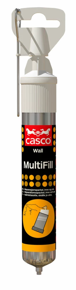 Casco MultiFill er en hvit ferdigblandet reparasjonssparkel til reparasjon av nesten alle typer materialer (tre, betong, metall, bygningsplater, mm.). Kan brukes inne og ute (overmalt). Fyller hull opptil 1 cm i en omgang. Metall skal alltid forbehandles med primer. Kan ikke brukes på PVC, aluminium eller på flater som permanent er utsatt for fukt. Lagtykkelse: opptil 10 mm per lag. Tørketid: 2 mm – ca. 1 time.
