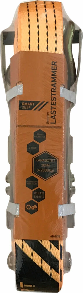 Smart 365* lastestropp med jekketalje. J-Hook feste. Kapasitet 2000 kg. Mål (BxL) 50×8000 mm. Selges i stykk.