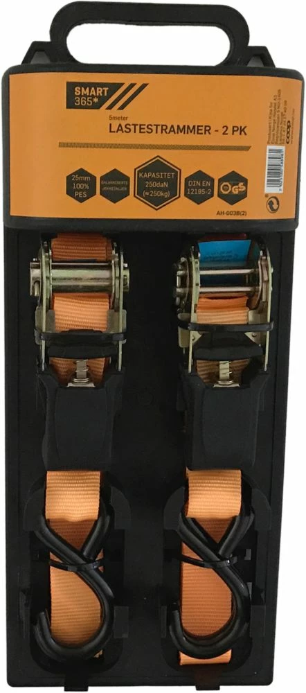 Smart 365* lastestropper med jekketalje. Kapasitet 250 kg. Pakke á 4 stykk. Mål (BxL) 25×5000 mm.