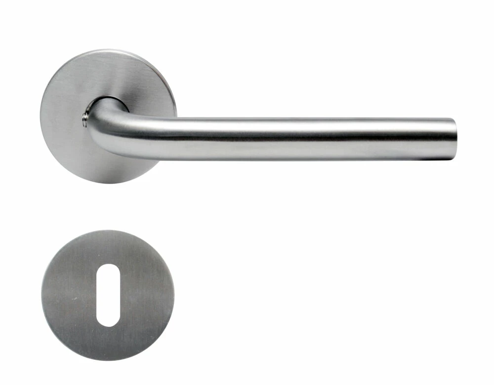 Vrideren kommer i L-rustfri stål og monteres med klikk-rosett. Den er utformet etter L-håndtak design og det medfølger 2 stk. nøkkelskilt og komplett universelt monteringssett.