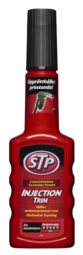 STP Injection Trim er et forebyggende produkt som forhindrer avleiringer i å bygge seg opp i innsprøytningsdyser og ventiler. Hele flaskens innhold tømmes i en full tank (opp til 60 liter). Smører og forhinder isdannelse. Brukes hver 2000 km. For alle bensinmotorer. Et rent drivstoffsystem er mer miljøvennlig, øker motorens levetid og gir bedre kjøreegenskaper. Ved akutte driftsproblemer, bruk STP Injector Cleaner.