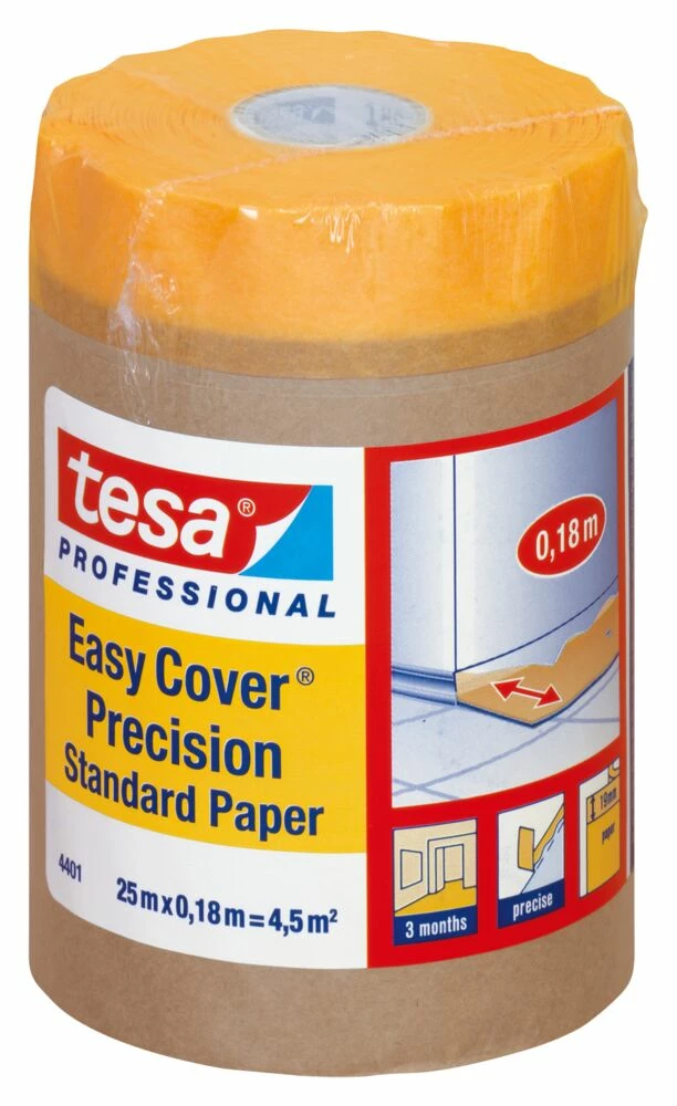 tesa Easy Cover Precision Standard Paper med 2-i-1-løsning lar deg dekke til store områder og beskytte nøyaktig i ett tidsbesparende arbeidstrinn!