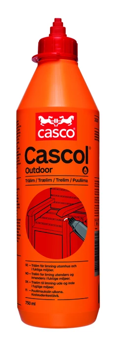 Cascol outdoor trelim er et meget sterkt og fuktbestandig lim som kan brukes til blant annet å lime utemøbler og materialer i fuktig miljø, som for eksempel i badstu. Limet gir en hard og fargeløs fuge.