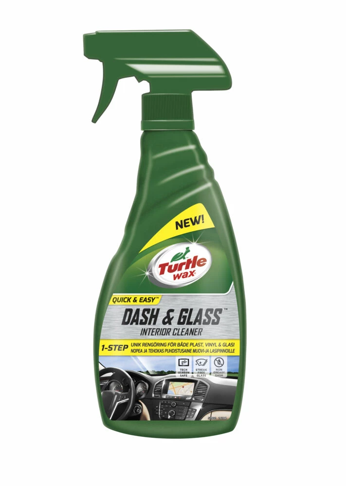 Turtle Wax Dash&Glass Cleaner interiørrens er en unik rengjøring for både plast, vinyl og glass. For best resultat, rengjør først ruter for så å tørke øvrige overflater med en microfiberklut. Ikke beregnet for semsket skinn, eller skinn med utette åpne porer. Inneholder parfyme. Oppbevares utilgjengelig for barn.