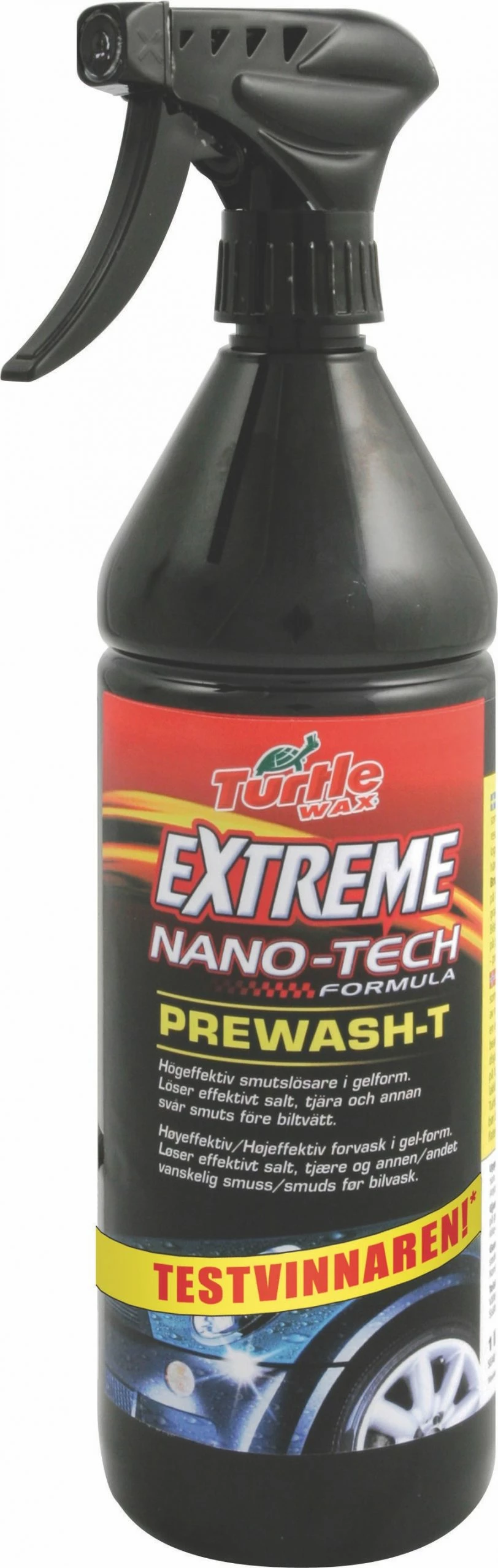 Turtle Wax Extreme Prewash-T er en forvask i gel form. Forvasken sørger for en rask og grundig rengjøring. Turtle Wax Extreme Prewash-T løsner effektivt salt, tjære og annen vanskelig smuss før bilvask. Forvasken blir liggende på lakkflaten og bearbeider denne.