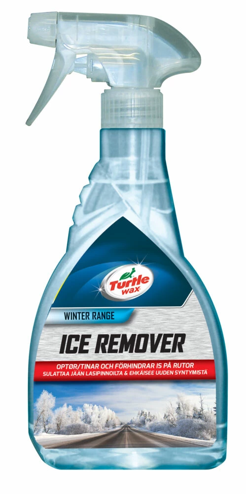 Turtle Wax Ice Remover tiner hurtig og effektivt is fra rutene og forhindrer ny isdannelse. For å fjerne is: spray Ice Remover direkte på isbelagte ruter og la virke ett minutts tid. Fjern eventuelle rester av is med en isskrape eller våtskrape. Mot dugg: Spray Ice Remover på en klut og tørk over rutens innside. 500 ML.