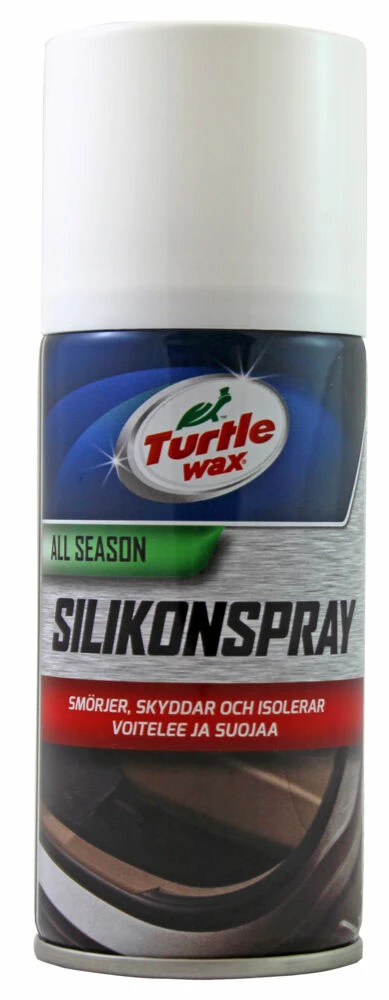 Turtle Wax silikonspray er en universalspray og den har mange bruksområder. Sprayen er ypperlig å bruke på dørlåser, henglser, wirer og mye mer. Turtle Wax silikonspray smører og beskytter og den holder knirk og fukt borte. Silikonsprayen isolerer og godt. Kan brukes sommer og vinter.